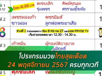 โปรแกรมมวยไทย 24 พฤศจิกายน 2567 รวมทุกเวที ทั้งมวยไทย 7 สี, THAI FIGHT และศึกท่อน้ำไทย เกียรติเพชร ทีเคโอ