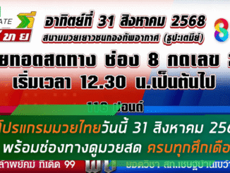 โปรแกรมมวยไทยวันนี้ 31 สิงหาคม 2568 พร้อมช่องทางดูมวยสด ครบทุกศึกเดือด