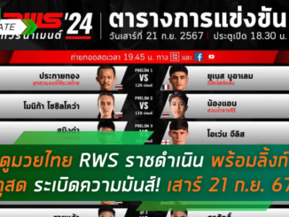 ดูมวยไทย RWS ราชดำเนิน พร้อมลิ้งก์ดูสด ระเบิดความมันส์! วันเสาร์ที่ 21 ก.ย. 2567