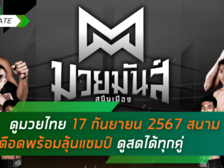 ดูมวยไทยวันนี้ เดือดทุกคู่! วันอังคารที่ 17 กันยายน 2567 สนามเดือดพร้อมลุ้นแชมป์ ดูสดได้ทุกคู่