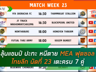 ศึกเดือด MEA ฟุตซอลไทยลีก 2024 นัดที่ 23 แข่งครบ 7 คู่ ลุ้นแชมป์และหนีตายระอุ บลูเวฟ ชลบุรี ปะทะ ราชนาวี ห้ามพลาดชม!