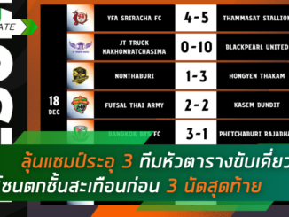 “เจที ทรัค นครราชสีมา พ่ายแบงค็อก บีทีเอส 0-4 ตกชั้นตามฟุตซอลไทยอาร์มี่ ในศึกฟุตซอลไทยลีก 2024 ขณะที่ราชนาวีแม้พ่ายธรรมศาสตร์ฯ ยังรอดหวุดหวิด