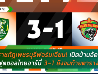 ราชภัฏเพชรบุรีฟอร์มเฉียบ! เปิดบ้านอัดฟุตซอลไทยอาร์มี่ 3-1 ยังคงจมท้ายตาราง ศึกฟุตซอลไทยลีก 2024