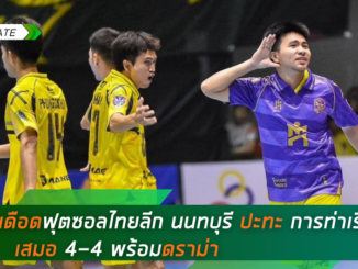 การแข่งขันฟุตซอลไทยลีก 2024/25 นัดที่ 3 แมตช์เดย์สุดท้ายของวันอาทิตย์ที่ผ่านมา ทีมนนทบุรี ฟุตซอลคลับ เปิดบ้านต้อนรับการมาเยือนของยักษ์ใหญ่อย่างการท่าเรือ เอเอสเอ็ม ผลการแข่งขันเสมอกันไป 4-4 ในเกมที่เต็มไปด้วยดราม่าหลายช่วง