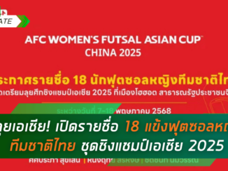 ลุยเอเชีย! เปิดรายชื่อ 18 แข้งฟุตซอลหญิงทีมชาติไทย ชุดชิงแชมป์เอเชีย 2025 ล่าโควตาฟุตซอลโลก