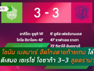 ผลบอลเจลีกสุดเดือด! โชนัน เบลมาเร่ ฮึดโกงตายท้ายเกม ไล่ตีเสมอ เซเรโซ่ โอซาก้า 3-3 สุดดราม่า