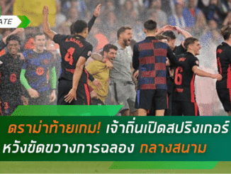 บาร์ซ่าคว้าแชมป์ลา ลีกาด้วยชัยชนะเหนือเอสปันญ่อล แต่ดราม่าท้ายเกม! เจ้าถิ่นเปิดสปริงเกอร์หวังขัดขวางการฉลองกลางสนาม