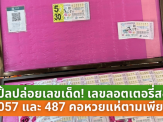ย่าเปิ้ลปล่อยเลขเด็ด! แผงหวยสะเทือน เลขลอตเตอรี่สองใบดัง 057 และ 487 คอหวยแห่ตามเพียบ