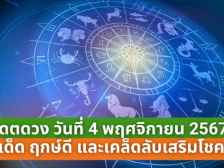 อัปเดตดวงประจำวันที่ 4 พฤศจิกายน 2567 พร้อมเลขเด็ด ฤกษ์ดี และคำทำนายการงาน การเงิน ความรัก และสุขภาพสำหรับคนเกิดทุกวัน เสริมดวงด้วยเคล็ดลับและสีมงคล