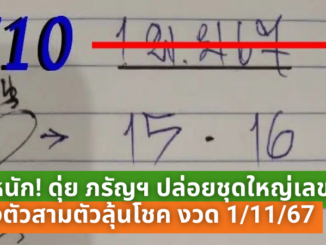 จัดหนัก! ดุ่ย ภรัญฯ ปล่อยชุดใหญ่เลขเด็ดสองตัวสามตัวลุ้นโชคเงินล้าน งวด 1/11/67