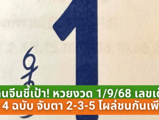 ปฏิทินจีนชี้เป้า! หวยงวด 1/9/68 เลขเด็ดมาแรง 4 ฉบับ จับตา 2-3-5 โผล่ชนกันเพียบ
