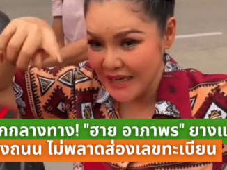 ระทึกกลางทาง! รถหรู “ฮาย อาภาพร” ยางแตกกลางถนน แฟนหวยไม่พลาดส่องเลขทะเบียน