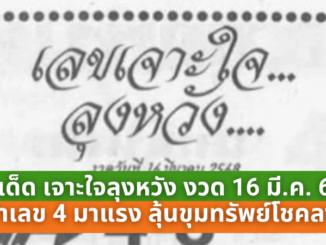 เลขเด็ด เจาะใจลุงหวัง งวด 16 มี.ค. 68 ชี้เป้าเลข 4 มาแรง ลุ้นขุมทรัพย์โชคลาภ!