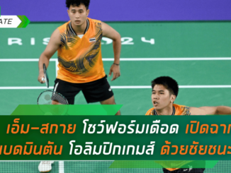 “เอ็ม” สุภัค จอมเกาะ และ “สกาย” กิตินุพงษ์ เกตุเรน คู่มืออันดับ 24 ของโลก โชว์ฟอร์มสุดยอด เอาชนะคู่เจ้าถิ่น คริสโต และ โทม่า จูเนียร์ โปปอฟ ด้วยการเก็บชัย 2 เกมรวด เปิดฉากศึกแบดมินตันโอลิมปิกเกมส์ 2024 อย่างสวยงาม