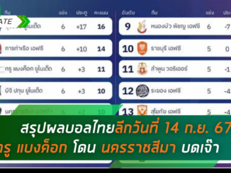 สรุปผลบอลไทยลีกวันที่ 14 ก.ย. 67 ทรู แบงค็อก โดน นครราชสีมา บดเจ๊า, บีจี ปทุม เปิดรังแบ่งแต้มหนองบัว พิชญ