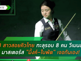 “3 นักสนุกเกอร์สาวไทย “มิ้งค์ สระบุรี-ใบพัด ศรีราชา-เจล สระบุรี” โชว์ฟอร์มร้อนแรง ทะลุรอบ 8 คนสุดท้าย วีเมนส์มาสเตอร์ส 2024 เตรียมลุ้นคู่เดือด มิ้งค์-ใบพัด!”
