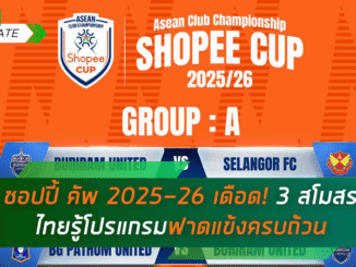 ชอปปี้ คัพ 2025-26 เดือด! 3 สโมสรไทยรู้โปรแกรมฟาดแข้งครบถ้วน