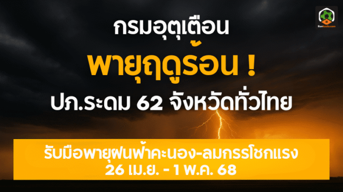 กรมอุตุเตือนพายุฤดูร้อน! ปภ.ระดม 62 จังหวัดรับมือพายุฝนฟ้าคะนอง-ลมแรงทั่วไทย 26 เม.ย. – 1 พ.ค. 68