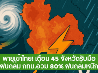 พายุดีเปรสชันก่อตัวในทะเลจีนใต้ แม้ไม่เข้าไทยตรงๆ แต่เสริมมรสุมให้แรงขึ้น กรมอุตุฯ เตือน 45 จังหวัดรับมือฝนถล่ม กทม.อ่วม 80% ฝนหนัก ติดตามรายละเอียดครบที่ บ้านกีฬา