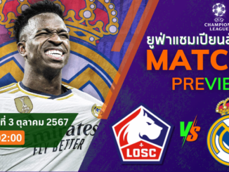 วิเคราะห์บอลยูฟ่าแชมเปียนส์ลีก 2024 ระหว่าง ลีลล์ พบ เรอัล มาดริด 2/10/67