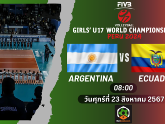 ดูวอลเลย์บอลหญิงสด ศึกชิงแชมป์โลก 2024 U17 (FIVB Volleyball Girls’ U17 World Championship) อาร์เจนตินา พบ เอกวาดอร์ วันนี้ 23/8/67