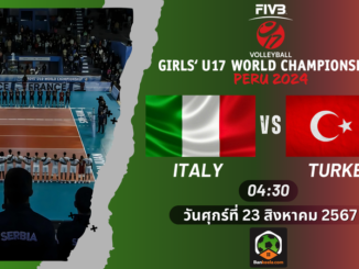 ถ่ายทอดสด วอลเลย์บอลวันนี้ อิตาลี VS ตุรกี ในการแข่งขันรอบก่อนรองชนะเลิศ (FIVB Volleyball Girls’ U17 World Championship) ระหว่างวันที่ 17-23 สิงหาคม 2567 ซึ่งจะจัดขึ้นที่ประเทศเปรู