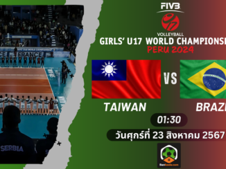 ดูวอลเลย์บอลหญิงสด ศึกชิงแชมป์โลก 2024 U17 (FIVB Volleyball Girls’ U17 World Championship) ไต้หวัน พบ บราซิล วันนี้ 23/8/67