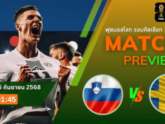 พรีวิวและวิเคราะห์เกมคัดบอลโลก 2026 กลุ่ม B สโลวีเนีย vs สวีเดน จัดเต็มสถิติ เฟอร์มล่าสุด จุดน่าสนใจแท็กติก พร้อมอัตรา ราคาบอล และมุมมอง โปรแกรมบอลวันนี้ ปิดท้ายด้วยบ้านผลบอลฟันธงคู่ควรสายทำการบ้านก่อนเชียร์!