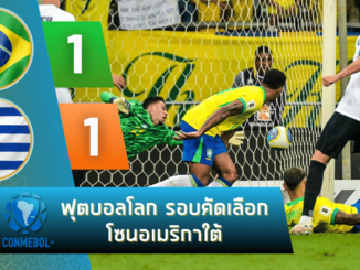 สรุปผลฟุตบอลโลก รอบคัดเลือก โซนอเมริกาใต้ 2024 บราซิลเสมออุรุกวัย 1-1 พร้อมเหตุการณ์สำคัญ รายชื่อนักเตะ และวิเคราะห์เกม ติดตามผลบอลสดและบ้านผลบอลที่บ้านกีฬา