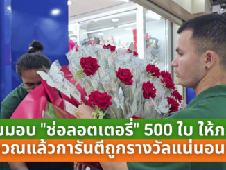 สุดเซอร์ไพรส์! หนุ่มมอบ “ช่อลอตเตอรี่” 500 ใบ ให้ภรรยา คำนวณแล้วการันตีถูกรางวัลแน่นอน!