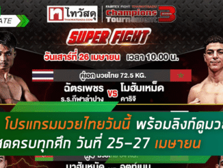 โปรแกรมมวยไทยวันนี้ พร้อมลิงก์ดูมวยสดครบทุกศึก วันที่ 25–27 เมษายน 2568 รวมช่องดูมวยผ่าน BANKEELA ชัดเจนทุกคู่เดือด