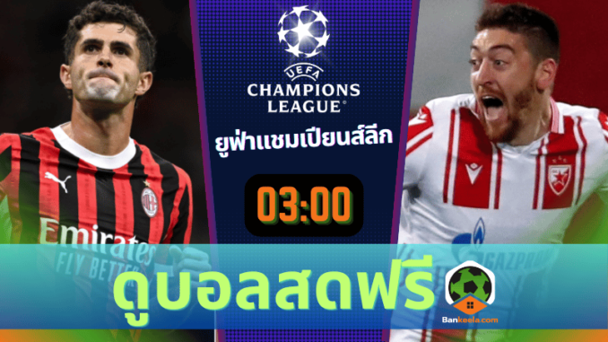 ทางเข้าดูบอลยูฟ่าแชมเปียนส์ลีก 2024 ดูบอลสดผ่านช่องทางนี้ได้เลย ถ่ายทอดสด ทีมเอซี มิลาน พบกับ ทีมเซอร์เวน่า ซเวซด้า 11/12/67 ดูบอลออนไลน์ บ้านกีฬา รับลิ้งดูบอลได้แล้วตอนนี้