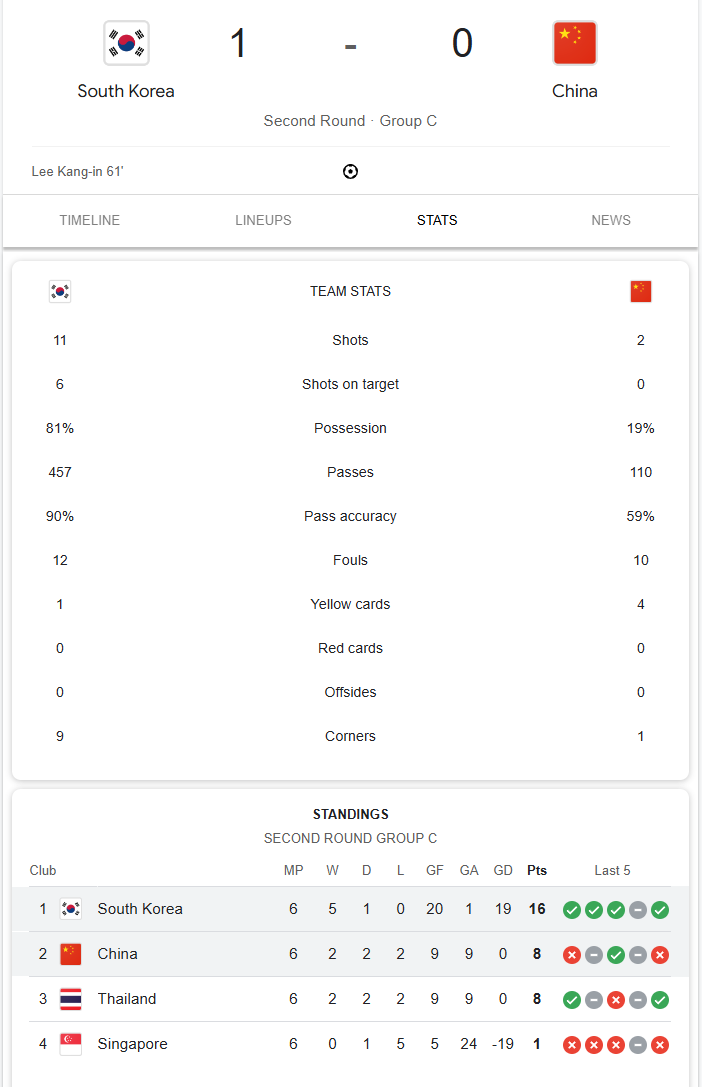 ผลบอลสด เกาหลีใต้ 1-0 จีน ฟุตบอลโลกรอบคัดเลือก 2026 วันนี้ 12/6/67