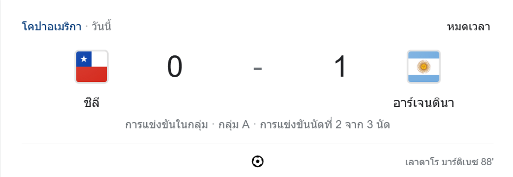 ถ่ายทอดสดฟุตบอลโคปาอเมริกา 2024 กลุ่ม A ทีมชาติ ชิลี vs ทีมชาติ อาร์เจนตินา วันนี้ 26 มิถุนายน 2567 ดูบอลย้อนหลัง คลิปไฮไลท์ ดูบอลโคปาอเมริกา 2024