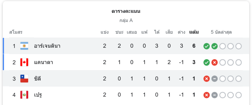 อาร์เจนตินาเฉือนชิลีหวุดหวิด 1-0 ในศึกโกปา อเมริกา 2024 ที่สหรัฐฯ เมื่อคืนที่ผ่านมา ณ เม็ตไลฟ์ สเตเดียม โดยแชมป์เก่าโชว์ฟอร์มเหนือชั้นตลอด 90 นาที แต่กลับเจาะแนวรับคู่แข่งไม่เข้า จนกระทั่งนาทีที่ 88 เลาตาโร่ มาร์ติเนซ ดาวยิงตัวสำรองมาซัดประตูชัยพาทีมคว้า 3 แต้มสำคัญ