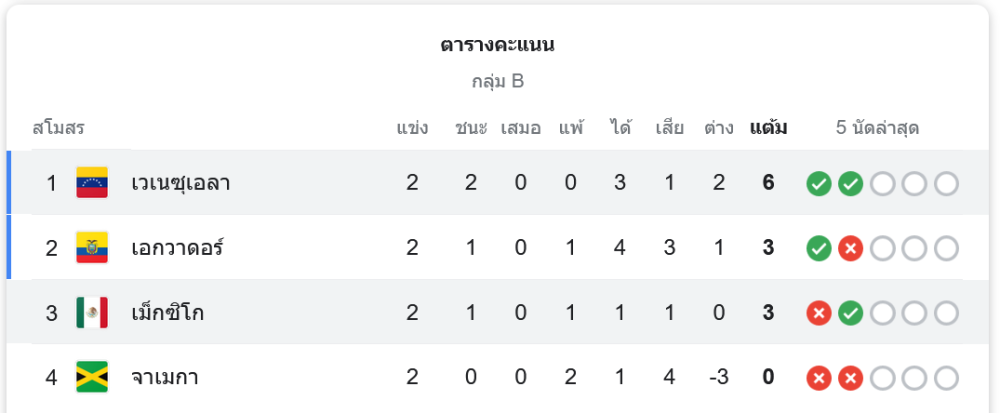 เม็กซิโกพลาดโทษท้ายเกม เวเนซูเอลาคว้าชัยสองนัดรวด เข้ารอบ 8 ทีมโกปา อเมริกา 2024 ส่วนเอกวาดอร์ชนะจาเมกาลุ้นเข้ารอบนัดสุดท้าย