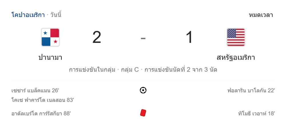 ผลบอลโคปาอเมริกา 2024 ปานามา 2-1 สหรัฐอเมริกา กลุ่ม C 28/06/67
