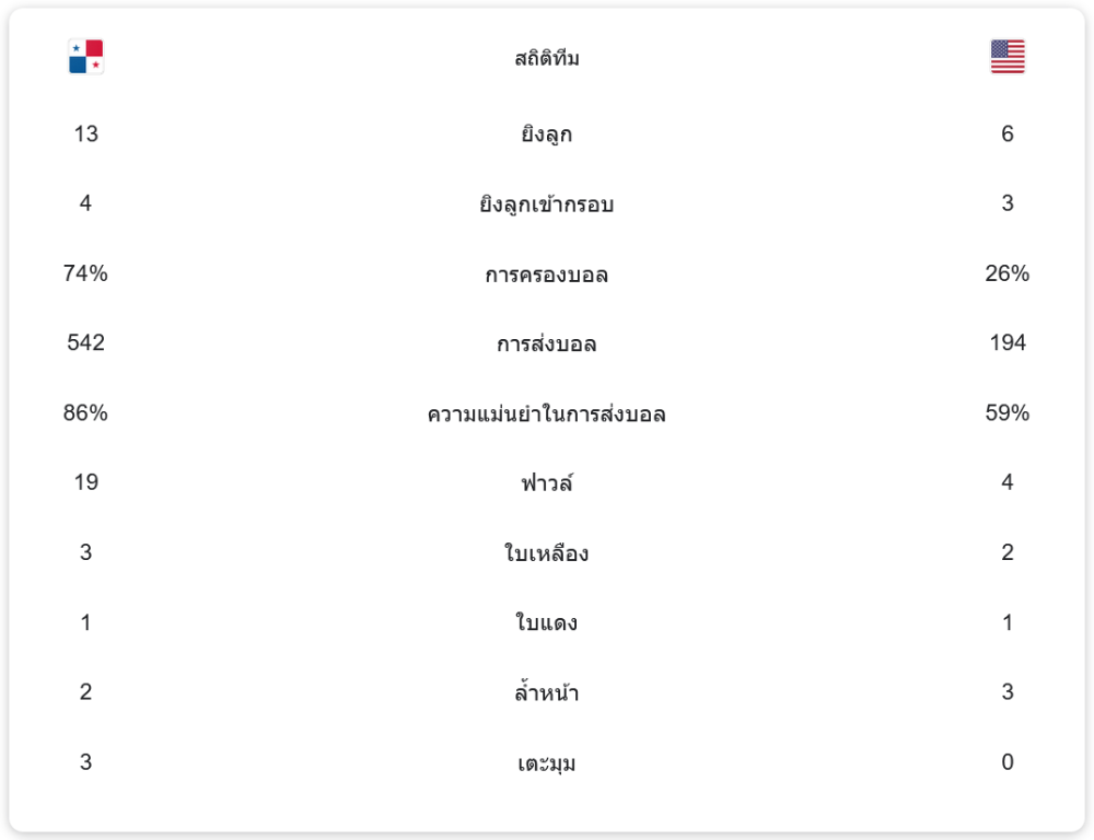 ครึ่งหลังในนาทีที่ 52 เอ็ดการ์โด้ ฟาริน่า ของปานามายิงไกลจากระยะ 30 หลาแต่ แม็ตต์ เทอร์เนอร์ ผู้รักษาประตูสหรัฐฯ รับได้อย่างไม่ยากเย็น