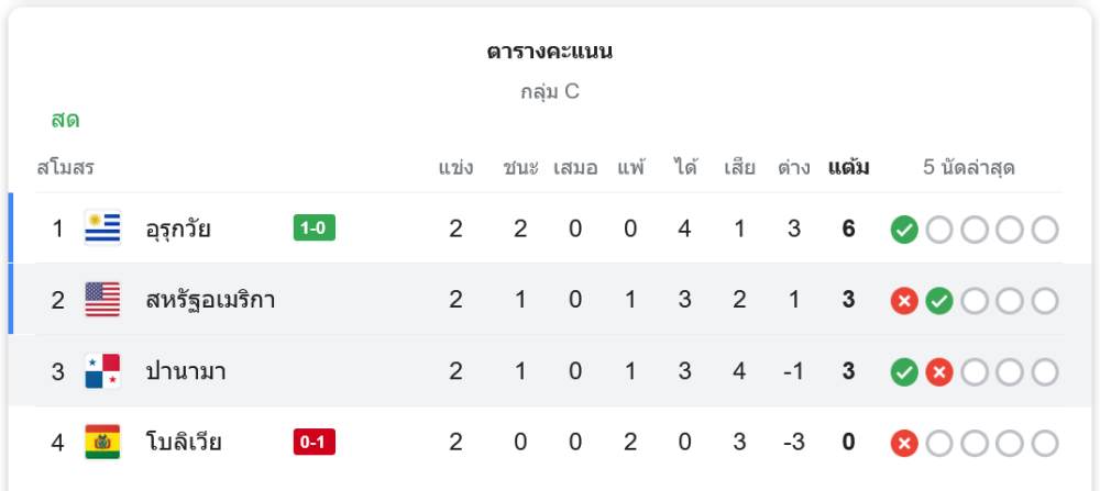 การแข่งขันฟุตบอลโกปา อเมริกา 2024 กลุ่ม ซี เมื่อเช้าวันศุกร์ที่ 28 มิถุนายน 2567 เจ้าภาพสหรัฐอเมริกา ที่มี 3 แต้มอยู่ในมือ ต้องพบกับปานามา โดยหากสหรัฐฯ ชนะในนัดนี้จะได้เข้ารอบ 8 ทีมสุดท้ายทันที