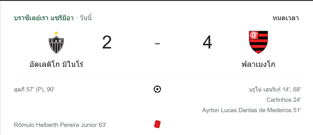 ผลบอลกังเปโอนาตู บราซีเลย์รู แซรียีอา 2024 อัตเลติโก มิไนโร่ 2-4 ฟลาเมงโก 4/7/67