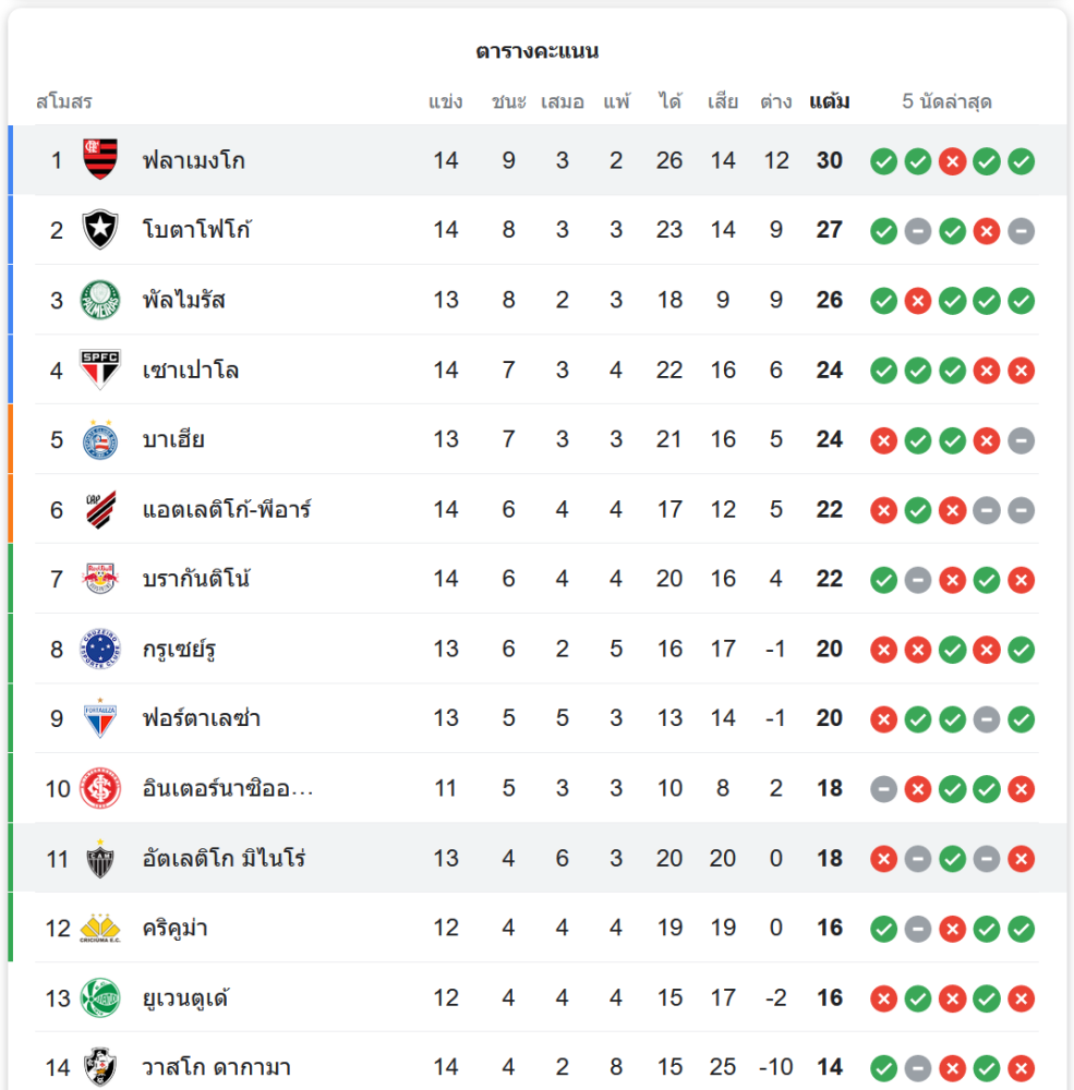สถานการณ์ในตารางคะแนน