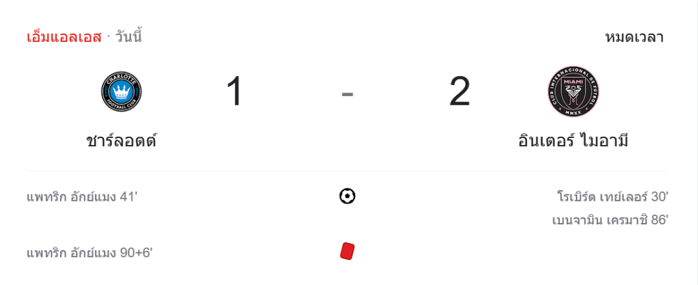 อินเตอร์ ไมอามี เฉือนชนะ ชาร์ลอตต์ เอฟซี 2-1 ในศึกเมเจอร์ลีกซอกเกอร์ 2024