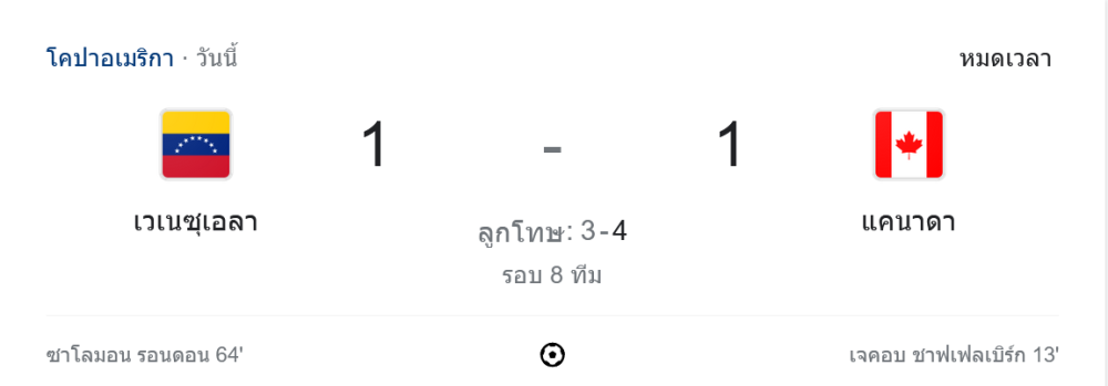 ผลบอลโคปาอเมริกา 2024 รอบ 8 ทีม ทีมชาติเวเนซุเอลา vs ทีมชาติแคนาดา วันนี้ 6 กรกฎาคม 2567 ดูบอลย้อนหลัง คลิปไฮไลท์ ดูบอลโคปาอเมริกา 2024