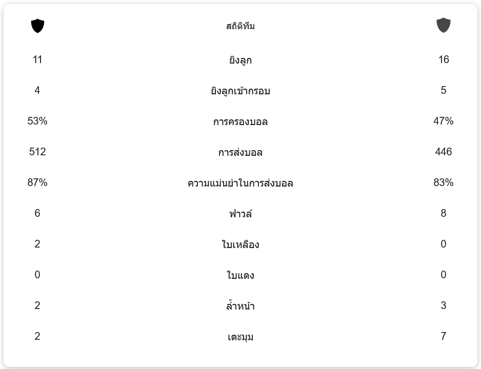 จากสถิติการแข่งขัน คูพีเอสมีการยิงลูกทั้งหมด 11 ครั้ง และยิงเข้ากรอบ 4 ครั้ง ขณะที่กนิสตัน เฮลซิงกิ มีการยิงลูกทั้งหมด 16 ครั้ง และยิงเข้ากรอบ 5 ครั้ง คูพีเอสมีการครองบอล 53% และส่งบอลทั้งหมด 512 ครั้ง โดยมีความแม่นยำในการส่งบอลอยู่ที่ 87% ในขณะที่กนิสตัน เฮลซิงกิ มีการครองบอล 47% และส่งบอลทั้งหมด 446 ครั้ง โดยมีความแม่นยำในการส่งบอลอยู่ที่ 83%