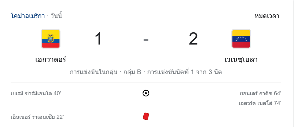 ถ่ายทอดสดฟุตบอลโคปาอเมริกา 2024 กลุ่ม B ทีมชาติเอกวาดอร์ vs ทีมชาติเวเนซุเอลา วันนี้ 23 มิถุนายน 2567 ดูบอลย้อนหลัง คลิปไฮไลท์ ดูบอลโคปาอเมริกา 2024