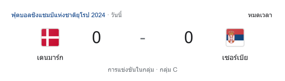 ถ่ายทอดสดฟุตบอลยูโร 2024 กลุ่ม C ทีมชาติเดนมาร์ก vs ทีมชาติเซอร์เบีย วันนี้ 26 มิถุนายน 2567 ดูบอลย้อนหลัง คลิปไฮไลท์ ดูบอลยูโร 2024