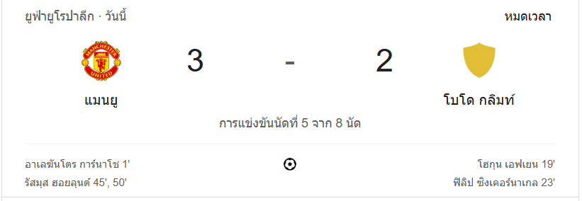 จบครึ่งหลัง: แมนเชสเตอร์ ยูไนเต็ด เอาชนะ โบโด กลิมท์ 3-2