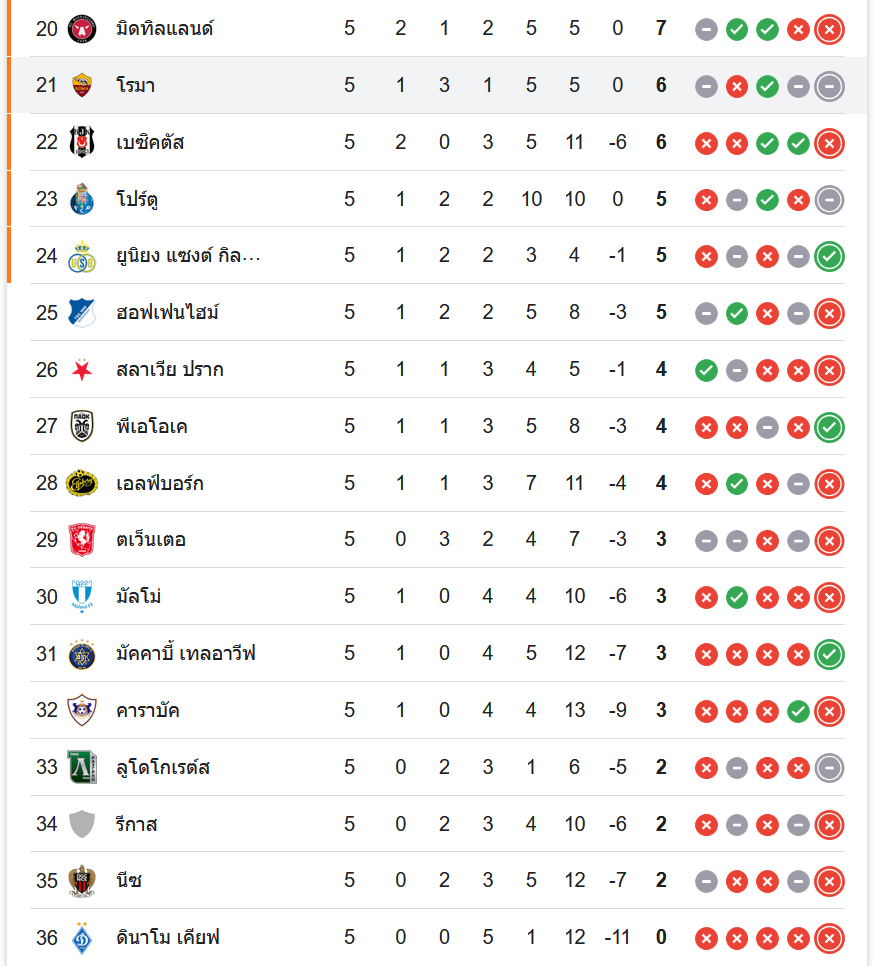 สถานการณ์ในตารางคะแนน