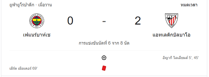ผลบอลสด ยูฟ่ายูโรปาลีก 2024 ระหว่าง ทีม เฟเนร์บาห์เช่ vs แอธเลติก บิลเบา วันนี้ 11/12/67 ดูบอลย้อนหลัง คลิปไฮไลท์ ดูบอลยูฟ่ายูโรปาลีก 2024