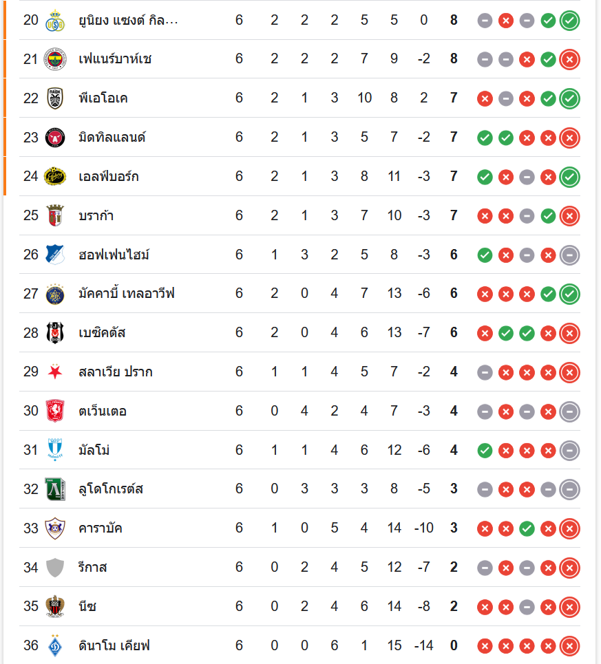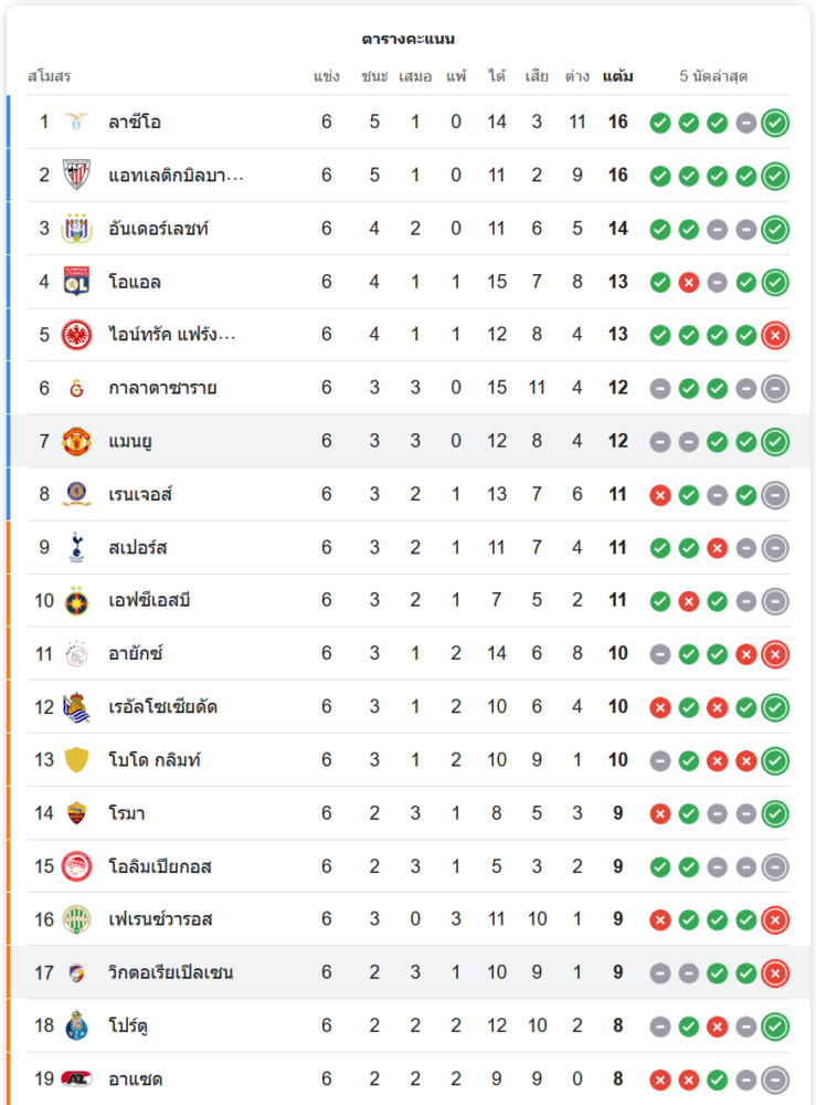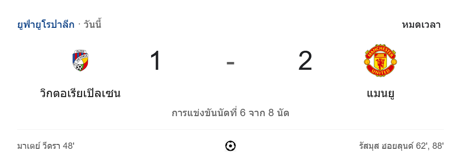 แมนเชสเตอร์ ยูไนเต็ด ขยับขึ้นอันดับ 7 ของกลุ่ม มี 12 คะแนน จากการชนะ 3 นัดติดต่อกัน ขณะที่วิคตอเรีย พัลเซ่น ยังต้องลุ้นหนักในนัดถัดไป